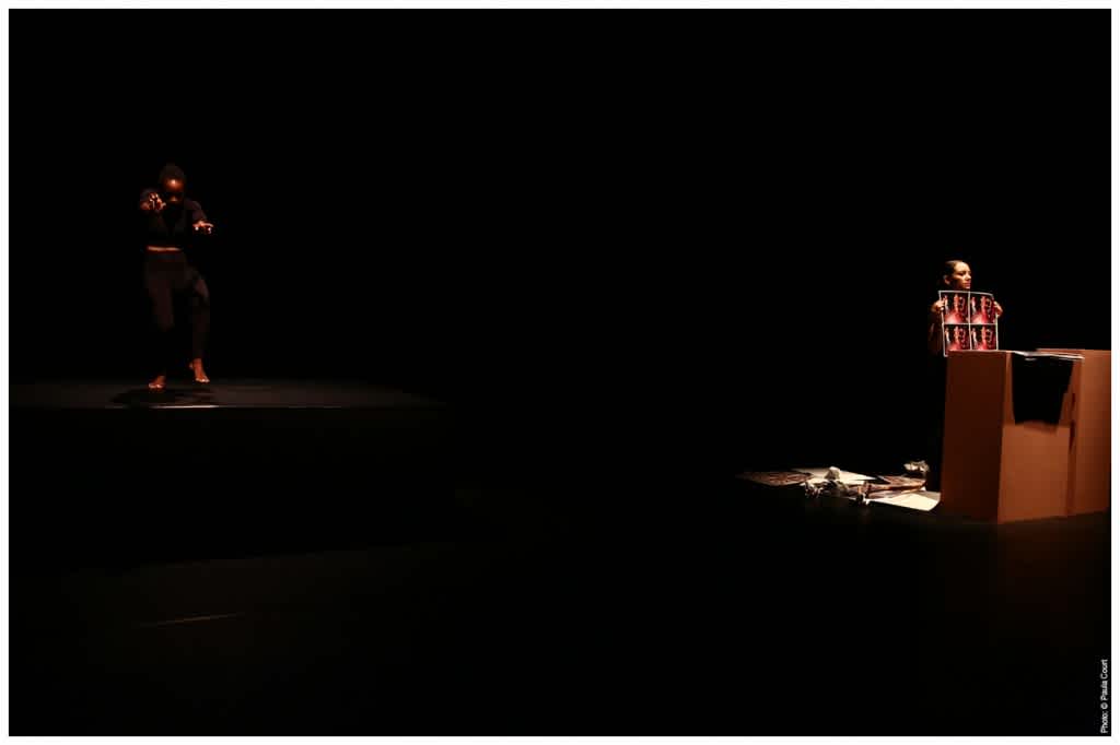 MOVEMENT IS AT THE CORE of a diasporic reality: transits in the cultural logics of a place and transit across landscape. By mapping those ideas in her performance, Simmons enables us to ask after diaspora’s origin point and where that origin point might exist within queerness. Within her directorial choices, Simmons develops a link—a Black and queer loophole—between these images, videos, and languages of moving.