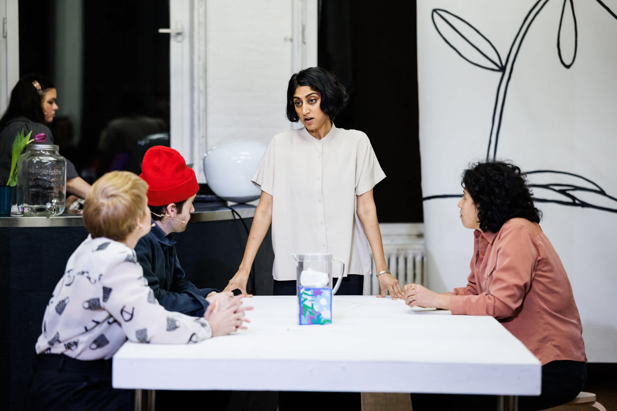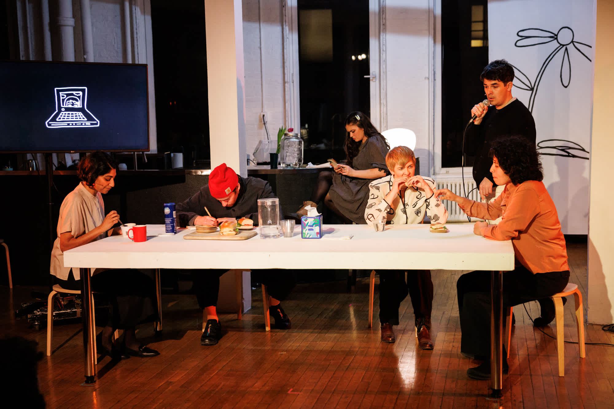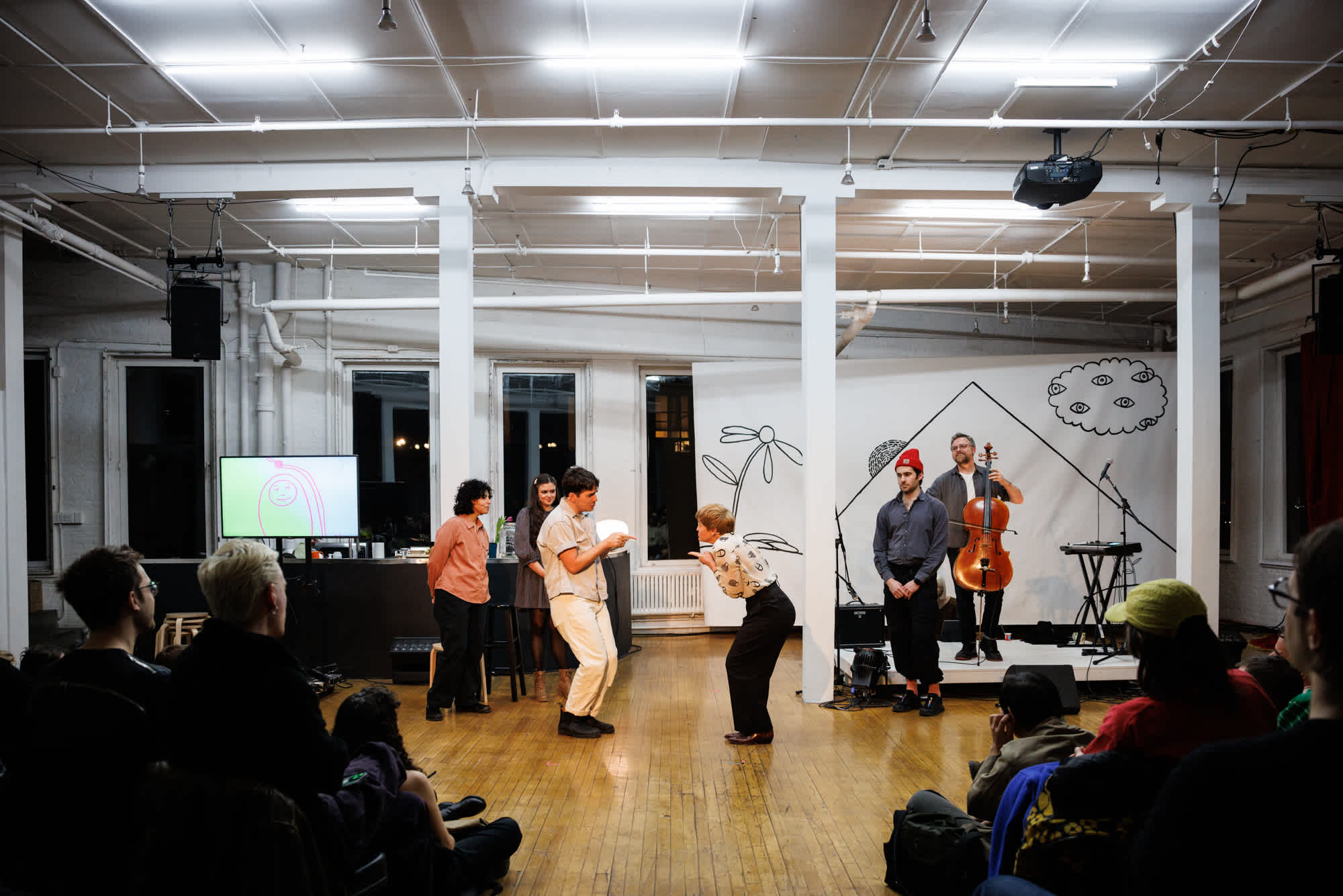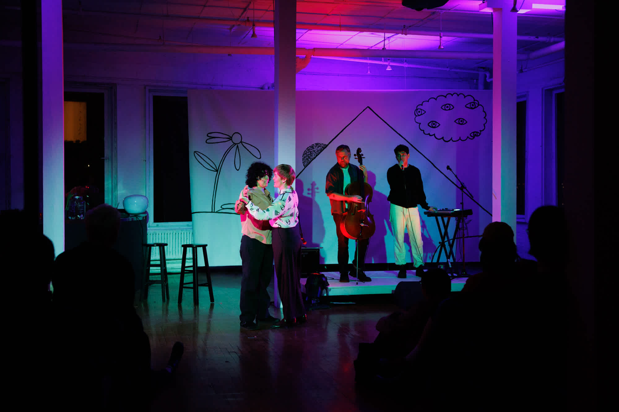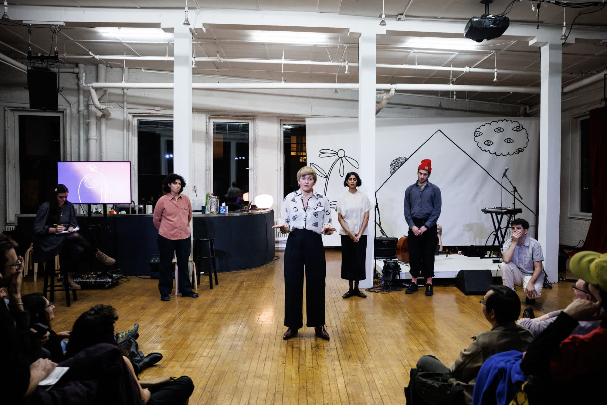 Featuring performances by Francesca D'Uva, Ashley Pérez Flanagan, Gus Heagerty, Sunita Mani, Erin Markey, Ethan Philbrick, Ned Riseley, and Madeline Wise. Directed by Tara Ahmadinejad, lighting design by Kristen Paige, choreography by Tess Dworman, and stage management by Rachel Rice.